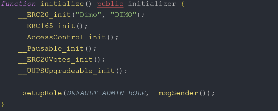 The DIMO contract is a UUPS proxy implementation but during deployment, the UUPS type is not mentioned.