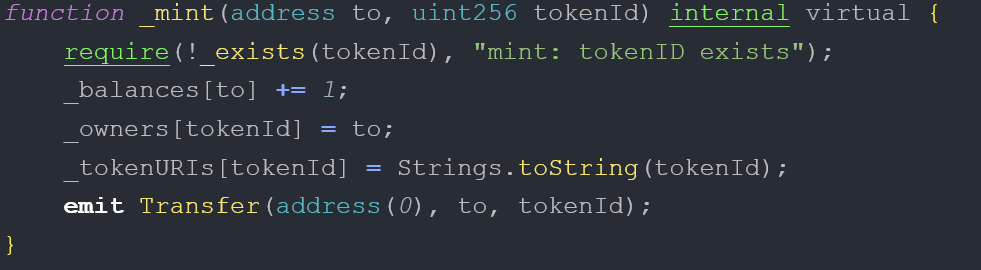 | Location | dimo-staking-contract-license-nft-main/contracts/LicenseBase/LicenseBase.sol – function _mint() |